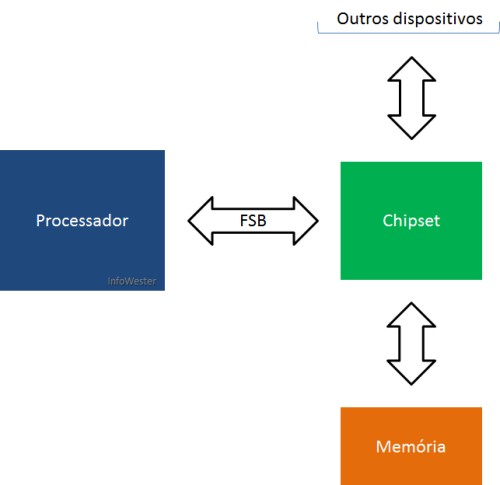 FSB (Front Side Bus): as frequências com as quais os processadores trabalham são conhecidas como clock interno. Mas, os processadores também contam com o que chamamos de clock externo ou Front Side Bus (FSB) ou, ainda, barramento frontal.
