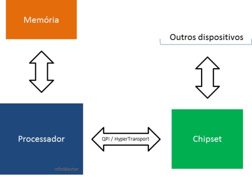 Com esta integração, os processadores passam a ter um barramento direto à memória. O QPI e o HyperTransport acabam então ficando livres para fazer a comunicação com os recursos que ainda são intermediados pelo chipset, como dispositivos de entrada e saída.